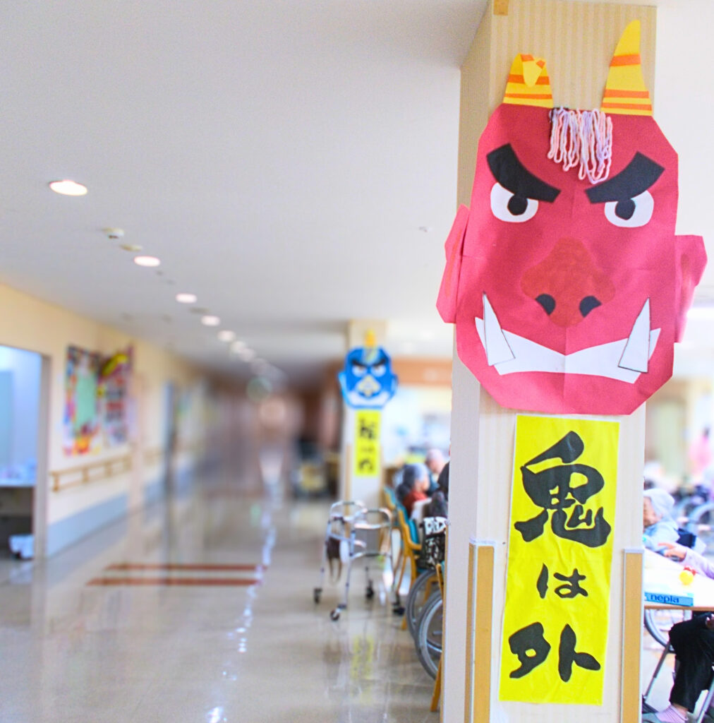 大地では、毎年この節分を利用者様と一緒に楽しみながら行っています!